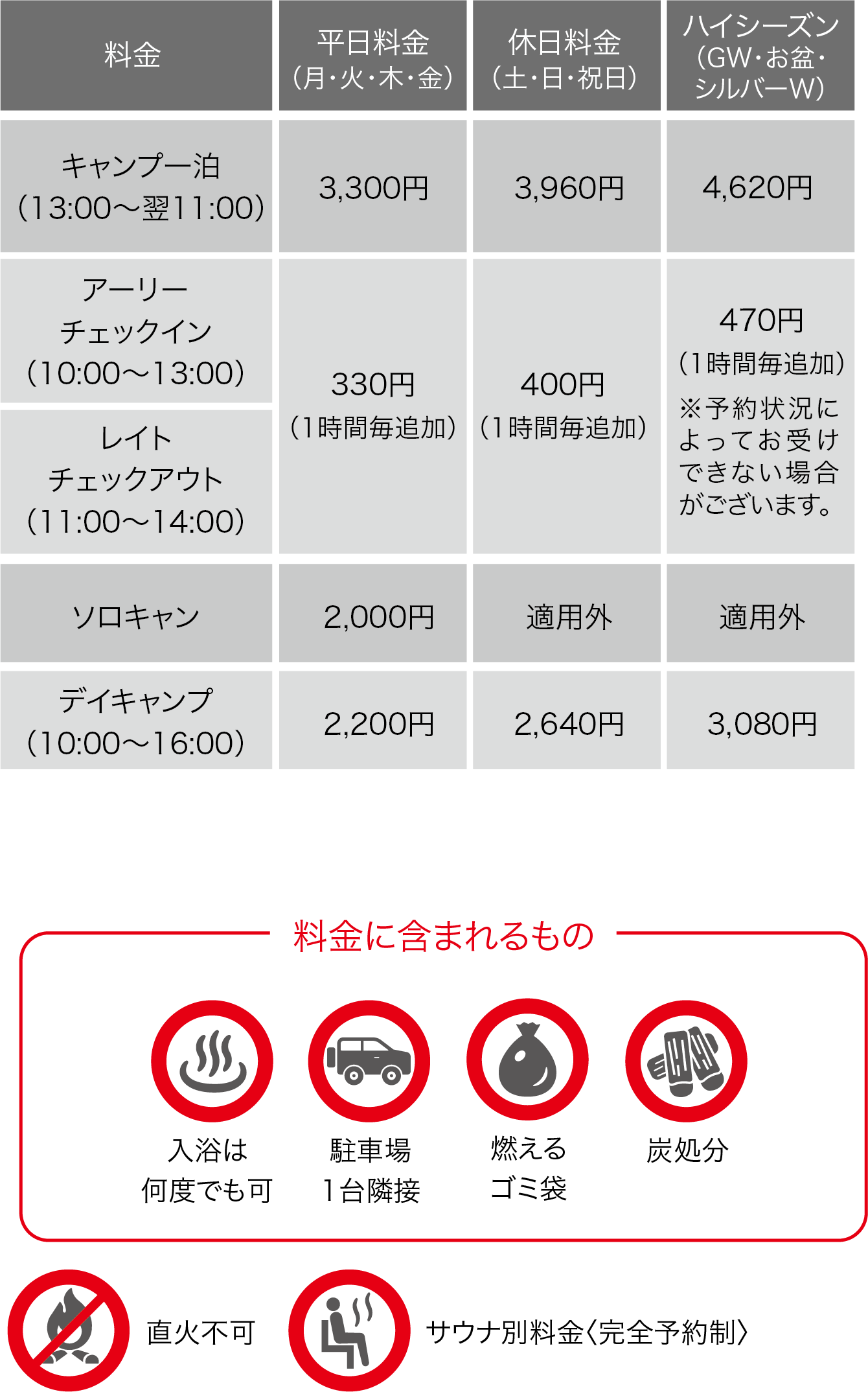 軽食が味わえるカフェ、地元食材を集めた売店、ランタンを始めとしたオリジナルグッズを展開する管理棟。 四季の景色を眺められる温泉、スウェーデン式サウナや沢水を活用した水風呂がある温泉棟。それぞれのスタイルに合わせた17のキャンプサイト。