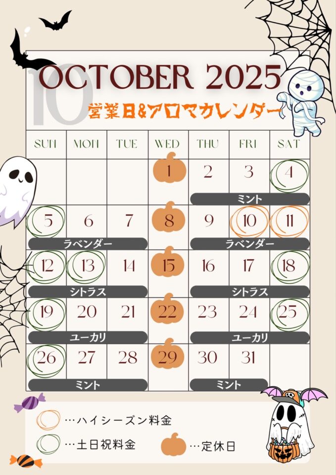 【10月の営業日&アロマカレンダー】