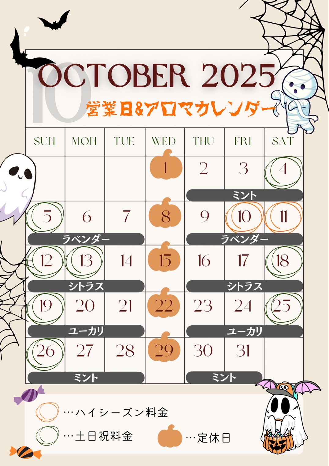 Home お知らせ INFORMATION 【10月の営業日&アロマカレンダー】