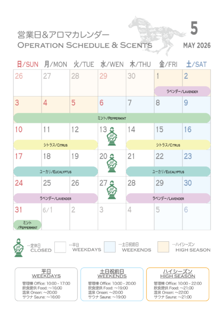 2026年春シーズンの営業スケジュールをお知らせいたします。